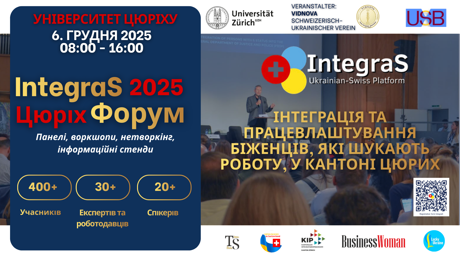Основною метою другого форуму INTEGRAS є сприяння інтеграції українських біженців у швейцарське суспільство та допомога в пошуку роботи. Форум створений як майданчик для надання необхідних знань та ресурсів, де учасники отримають практичну інформацію щодо адаптації до життя у Швейцарії, можливостей працевлаштування, розвитку кар’єри та професійної освіти. Захід об’єднає представників бізнесу, державних інституцій та громадських організацій, створюючи середовище для продуктивного діалогу та нових перспектив для українців у Швейцарії.