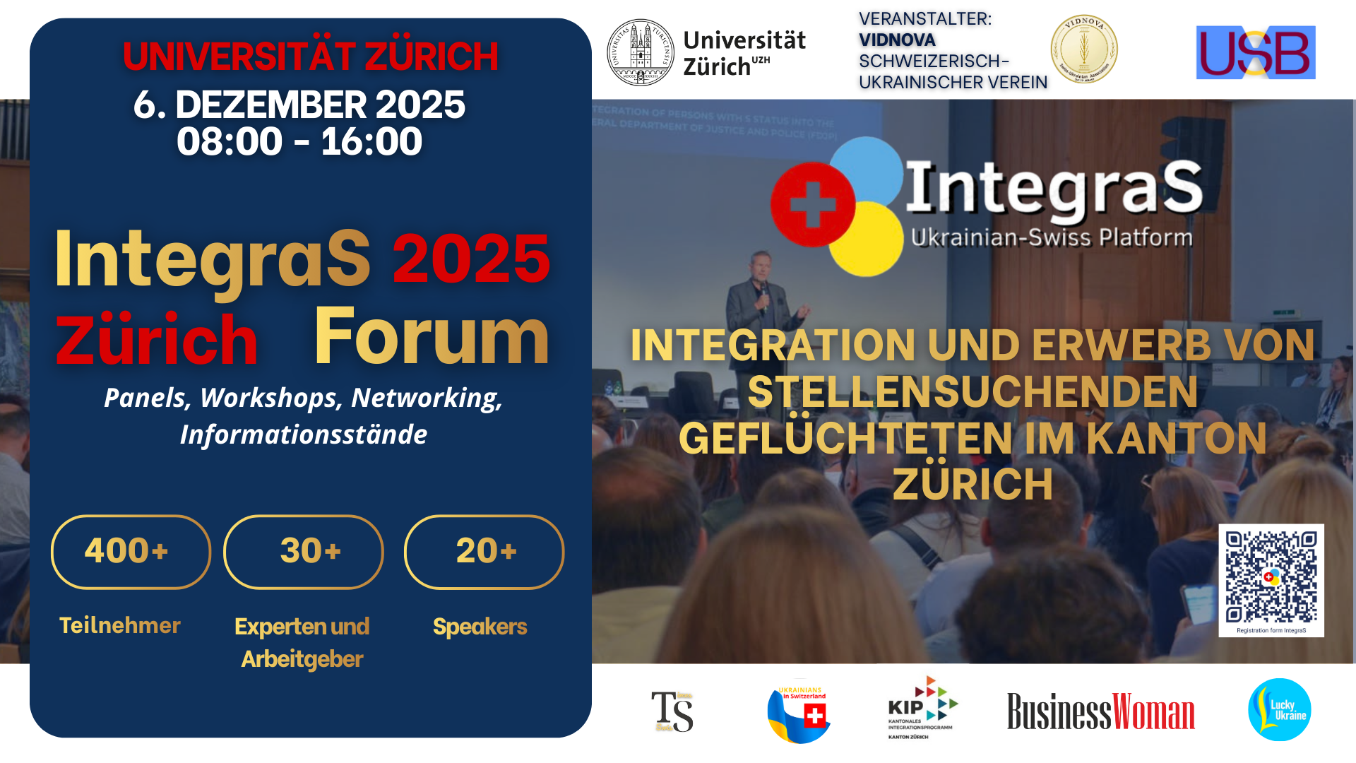 Am 6. Dezember 2025 fand an der Universität Zürich (Schweiz) das Forum IntegraS 2025 statt – eine professionelle sektorübergreifende Plattform, die sich mit Fragen der beruflichen Integration von Ukrainerinnen und Ukrainern in der Schweiz befasst.